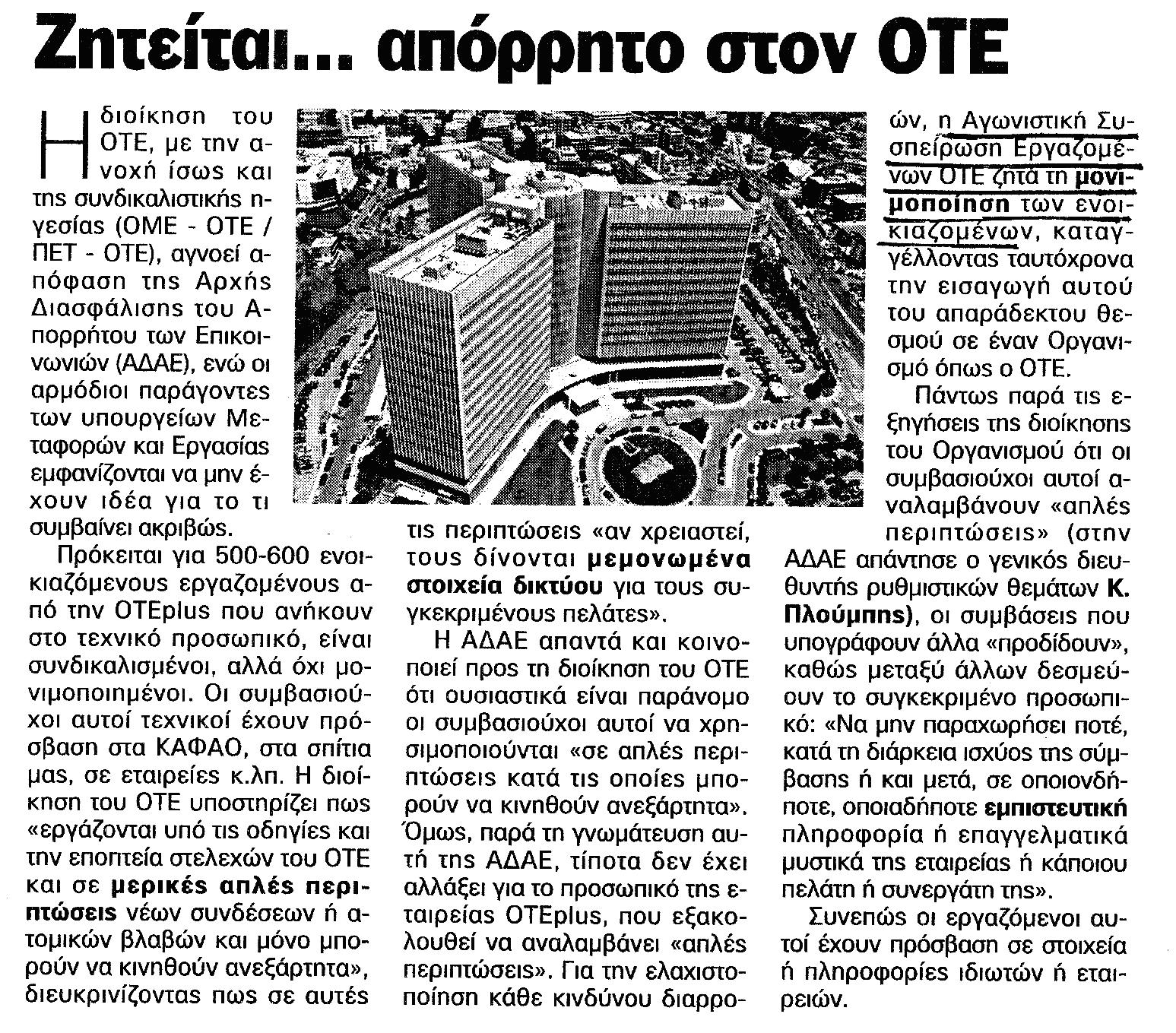 Παλεύουμε και θα συνεχίσουμε να παλεύουμε μέχρι να κλείσουν οι δουλεμπορικές Hellas-Com και OTEplus και να μονιμοποιηθούν οι εργαζόμενοι στον ΟΤΕ.