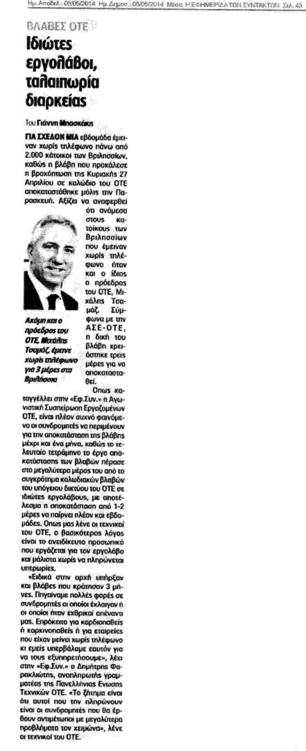 Δημοσίευμα της Εφημερίδας των Συντακτών απο στοιχεία της ΑΣΕ σχετικά με τη διάλυση των καλωδιακών.