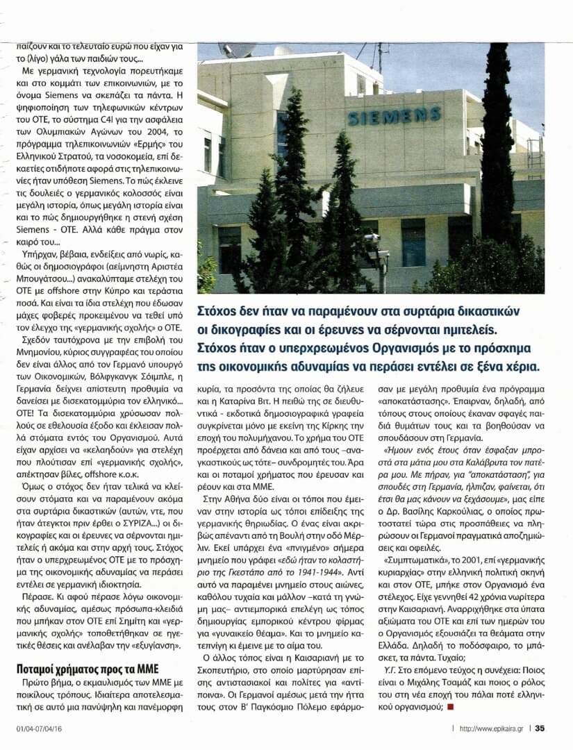 Από τη Siemens στον ΟΤΕ. Έρευνα του Γ.Ντάσκα στο περιοδικό ΕΠΙΚΑΙΡΑ τεύχος 334.